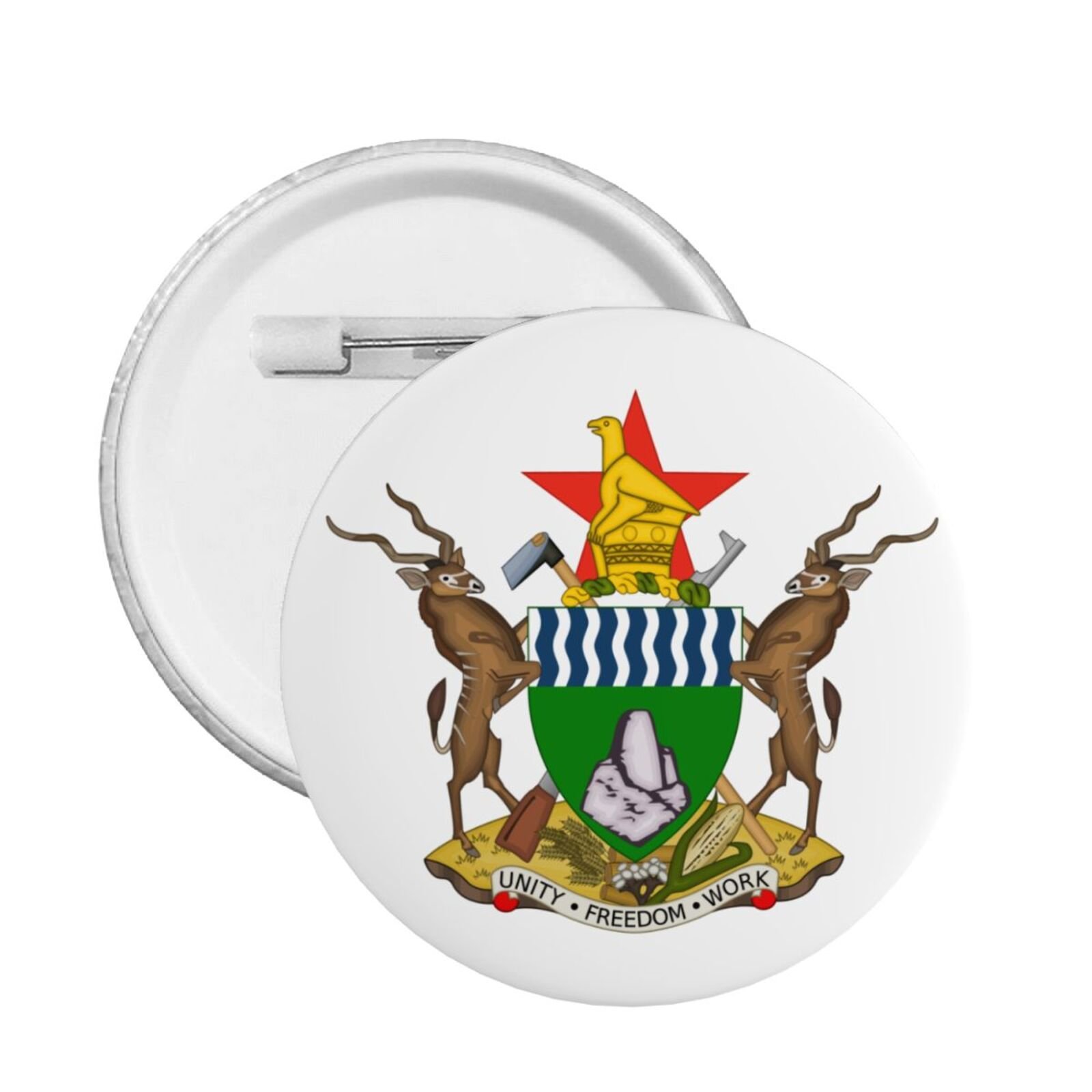 5 stuks ronde badges met het wapen van Zimbabwe ter ondersteuning van Zimbabwe, embleemspeldjes, decoratie voor Zimbabwanen