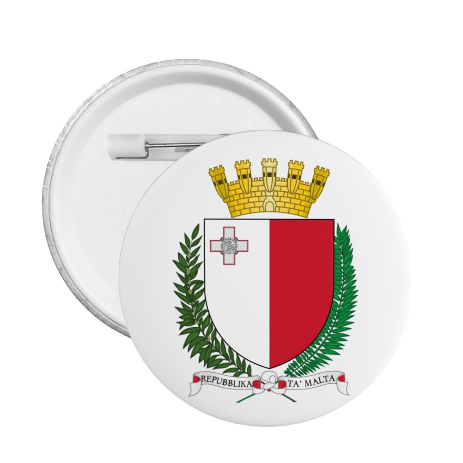 & Free ShippingInhoud van de verpakking: 5 ronde badges met het Maltese embleem. Diameter van de badges: Klein: 3 cm, Medium: 4,5 cm, Groot: 5,9 cm