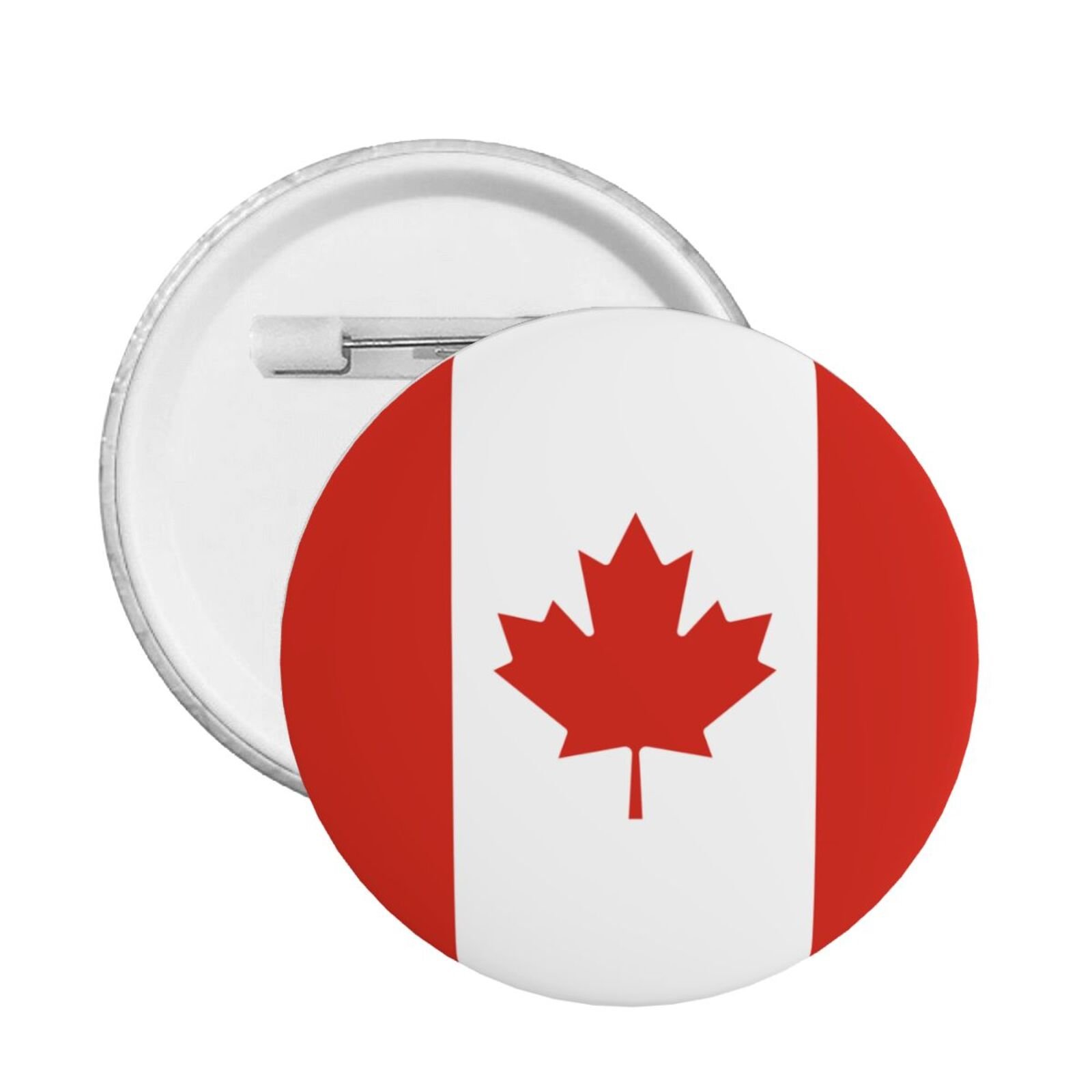 5 stuks ronde buttonbadges “Support Canada” met de Canadese vlag als ontwerp.