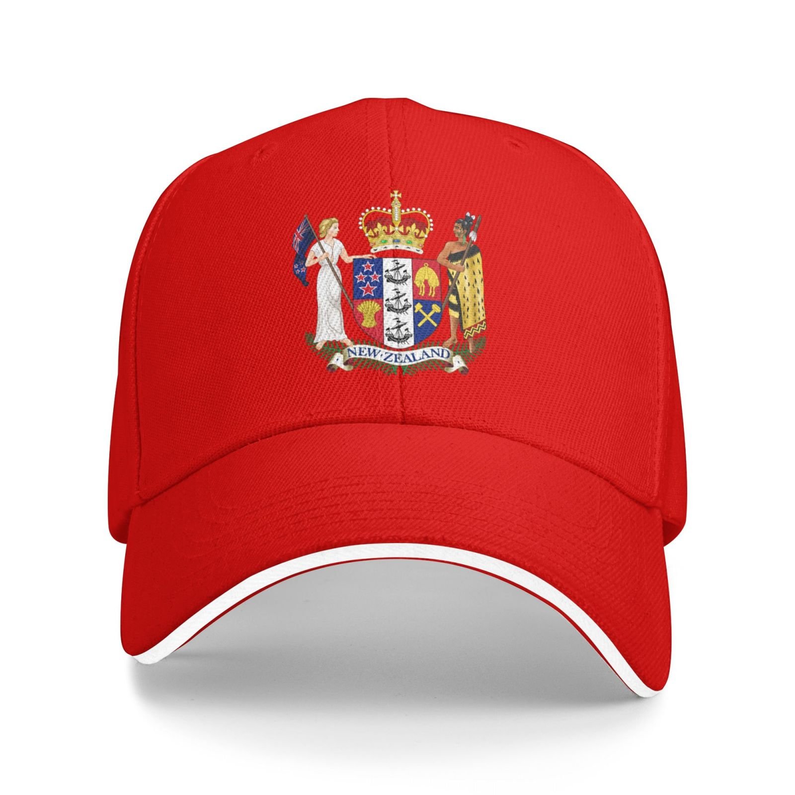 & Free ShippingBoné com estampa do brasão de armas da Nova Zelândia. Este design é para os verdadeiros patriotas da Nova Zelândia. Fecho de velcro ajustável na parte de trás, permitindo regular o tamanho do boné. Ideal para presentear um neozelandês.