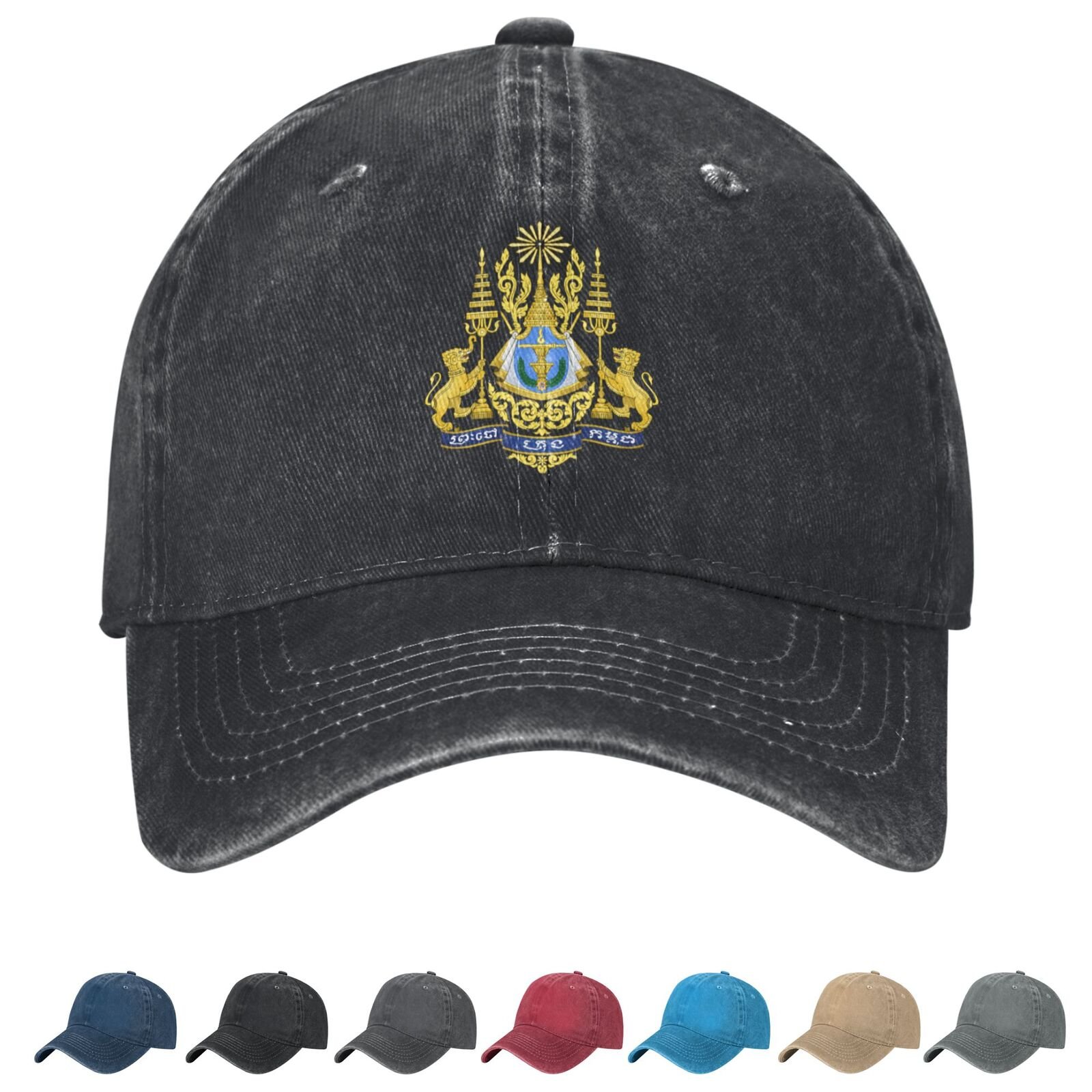 Package includes: 1 X Coat of arms of Cambodia Denim Baseball Cap