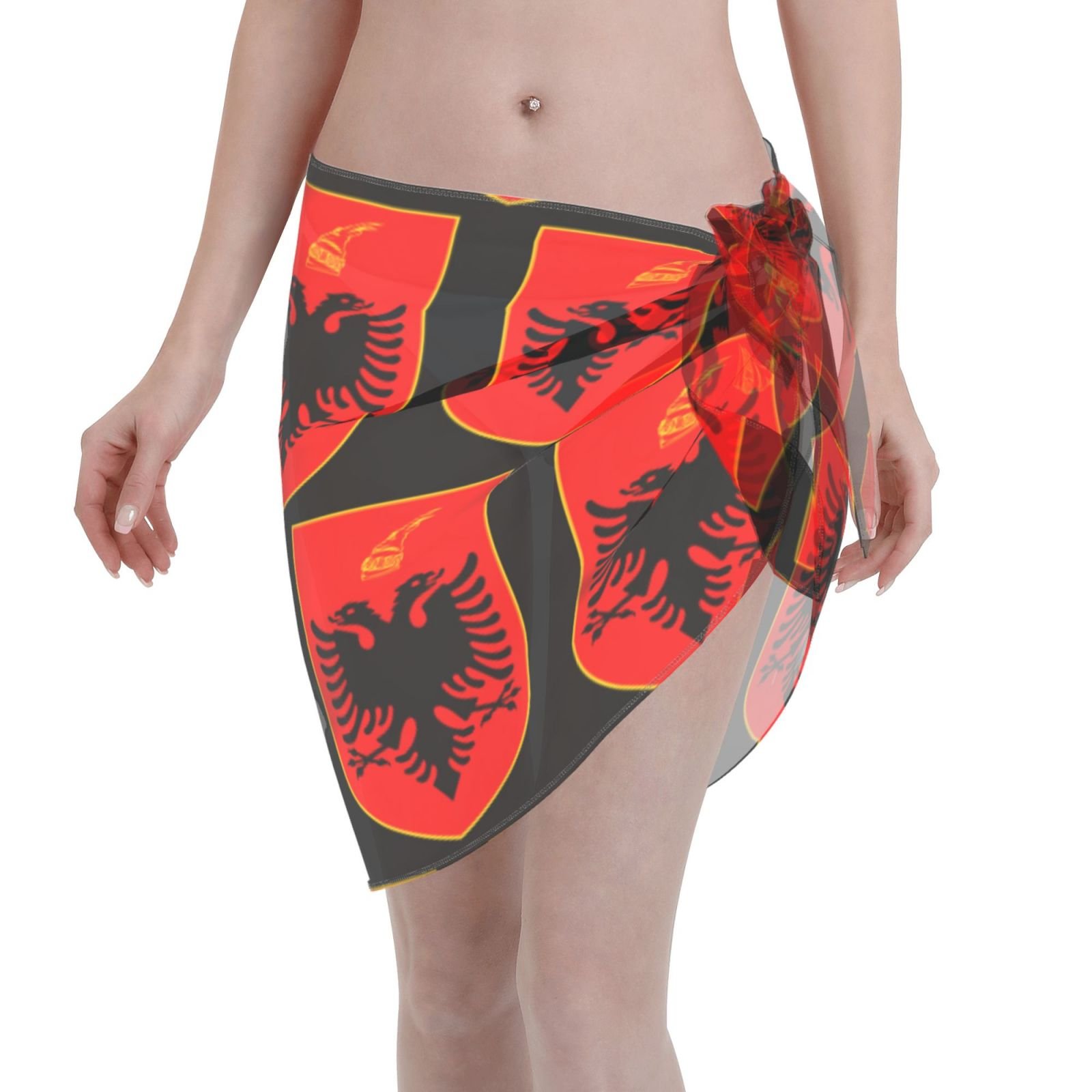 Pareo corto da donna, copricostume da spiaggia, emblema albanese per costume da bagno albanese, gonna corta, sciarpa in chiffon