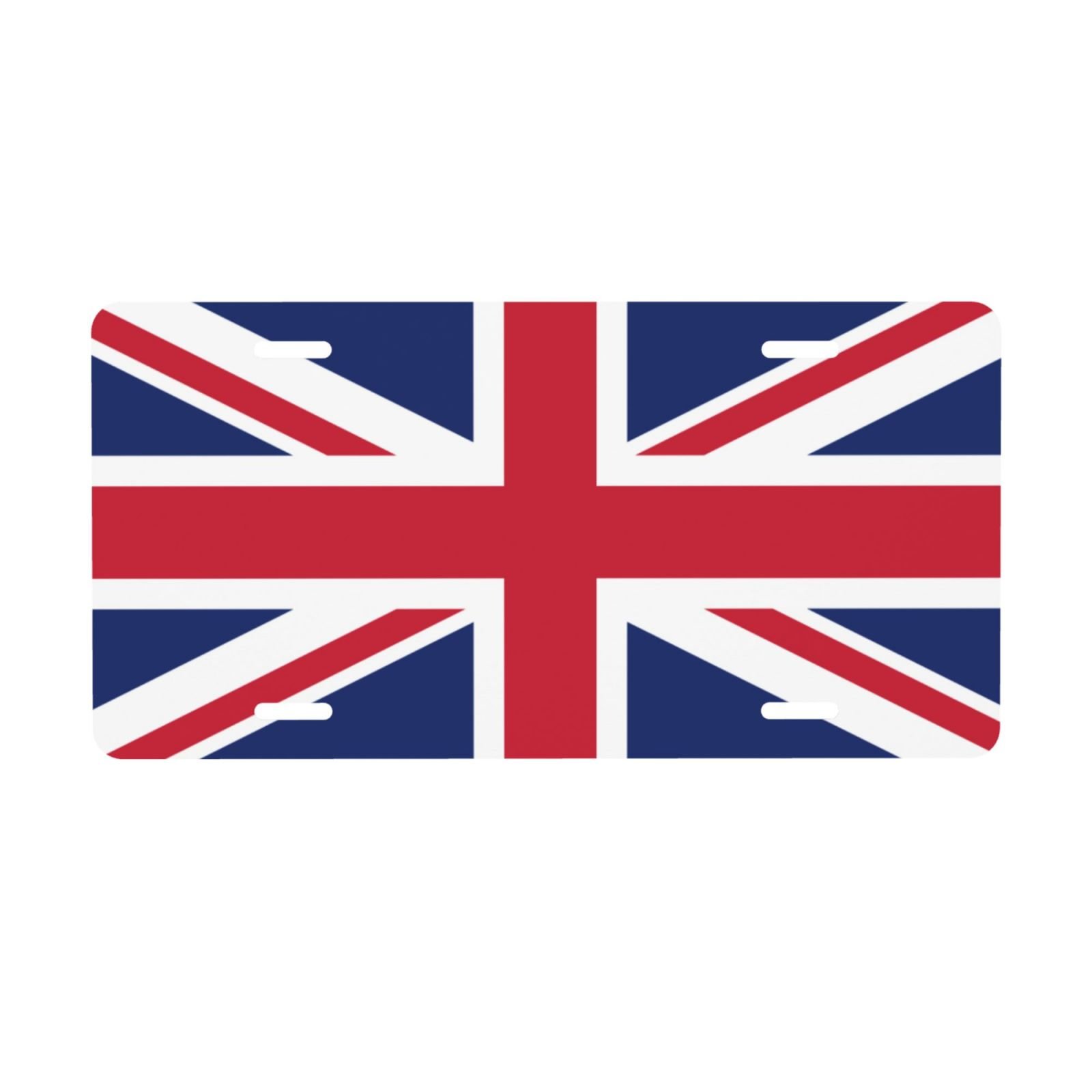 Targa con bandiera del Regno Unito, targa decorativa britannica per auto, copertura anteriore e posteriore in metallo, alluminio, 6×12 pollici, 4 fori