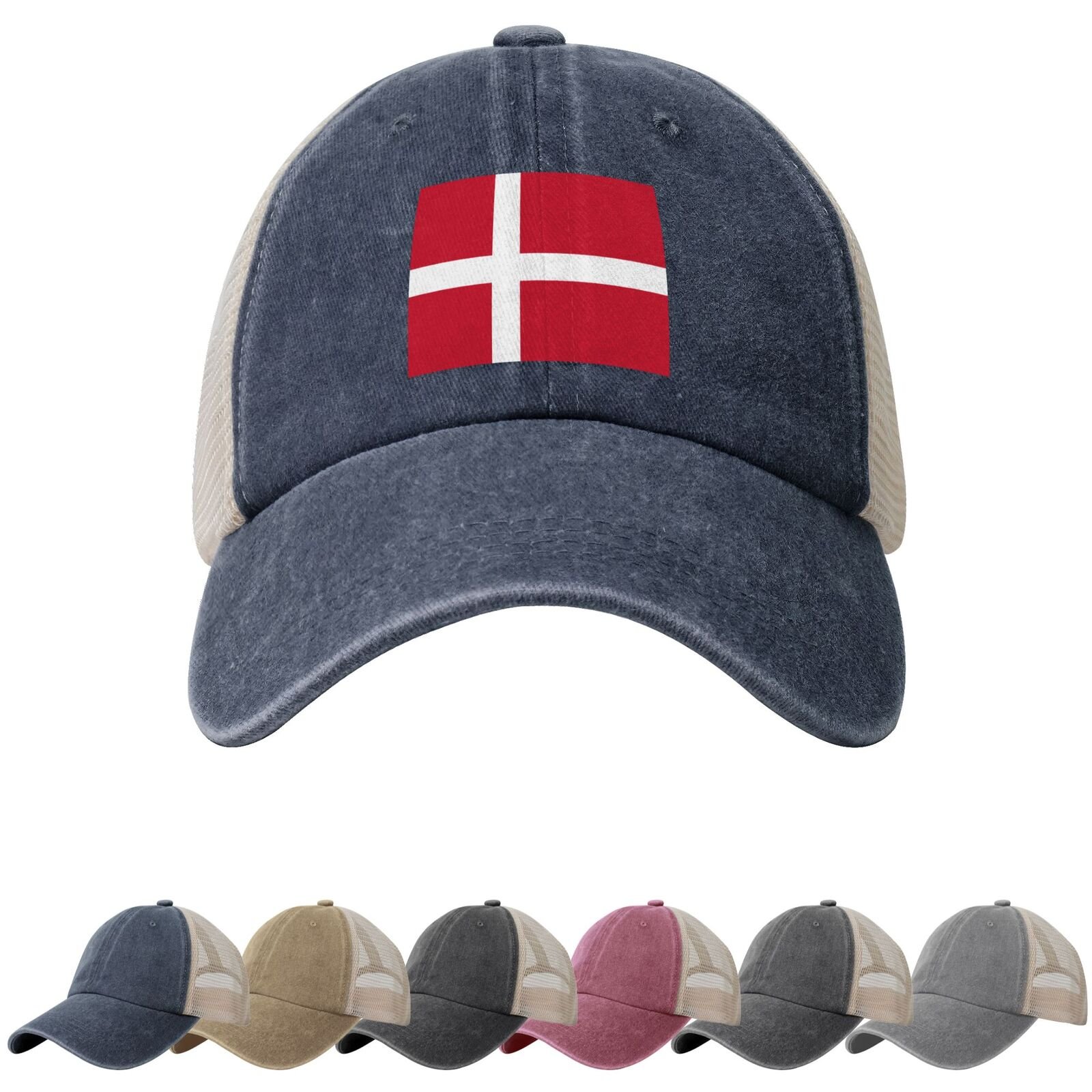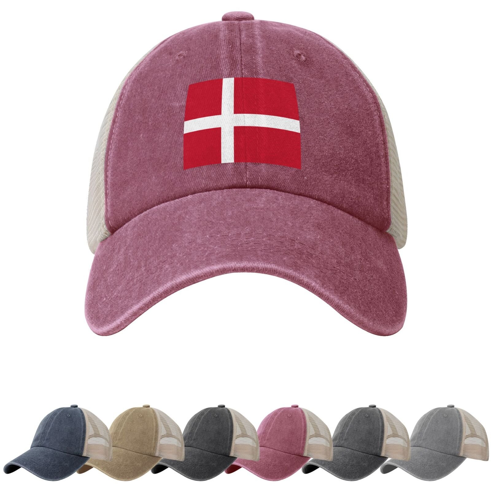 Pet met Deense vlag, pet met Deense vlag, baseballpet met Deense vlag, truckerpet met Deense vlag, strandpet met Deense vlag